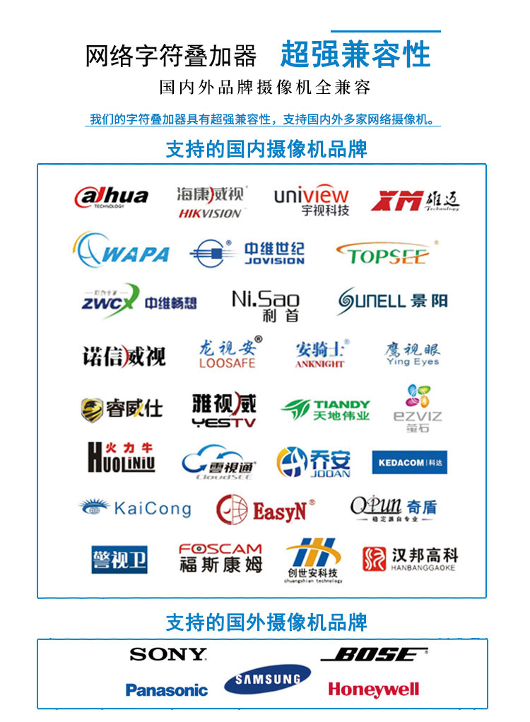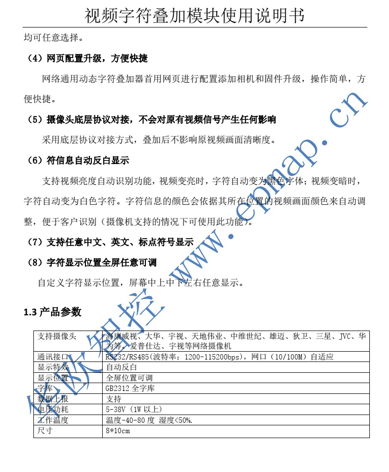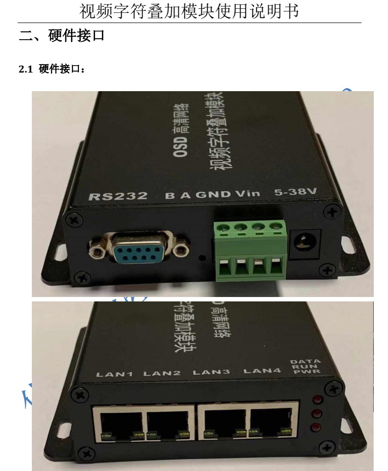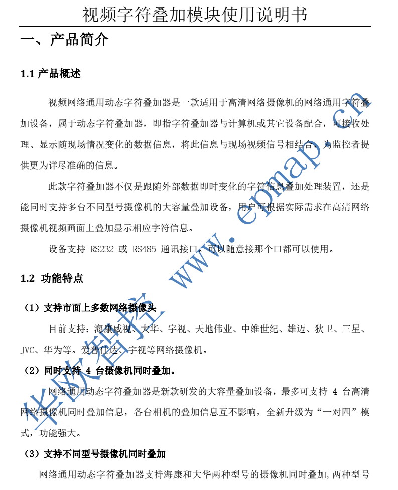 OSD視頻視頻字符疊加器,支持客戶通過RS232/RS485發(fā)數(shù)據(jù)/字符進(jìn)行數(shù)據(jù)疊加到視頻上。數(shù)據(jù)實(shí)時(shí)更新。可以與單片機(jī)、PLC等設(shè)備直接連接。