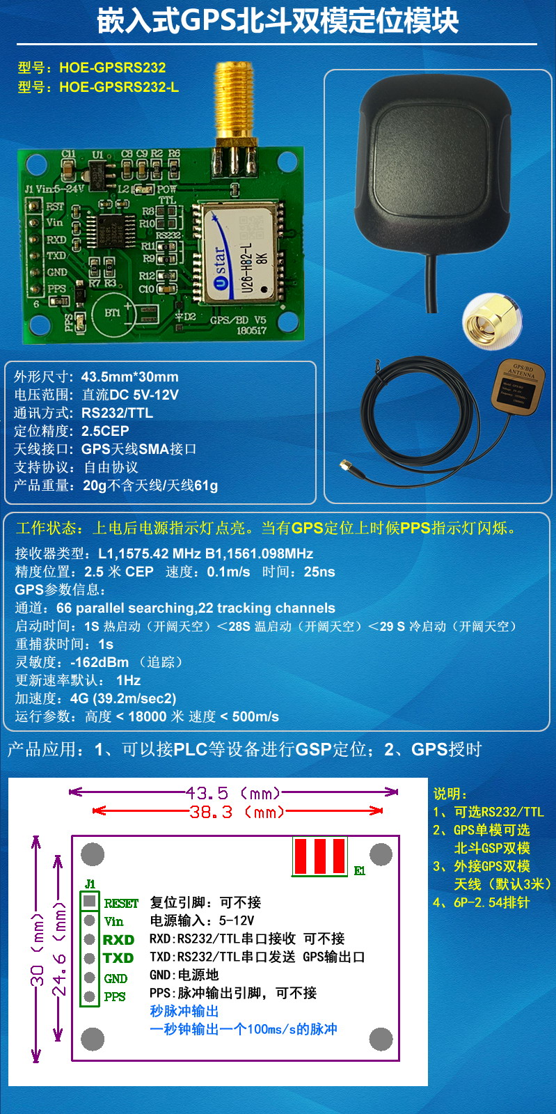 嵌入式北斗GPS定位模塊RS232TTL接口