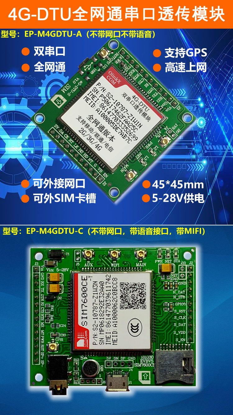 EP-M4GDTU-C(不帶網(wǎng)口,帶語音接口,帶MIFI)