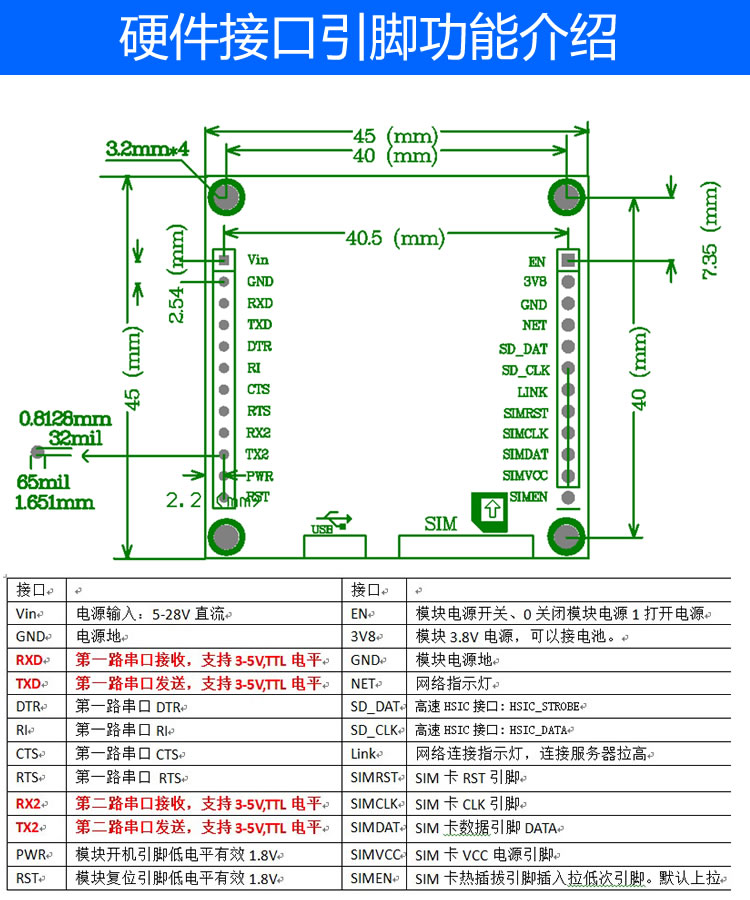 EP-M4GDTU-B(板載網(wǎng)口) 尺寸:45*66mm 定位孔40*40mm