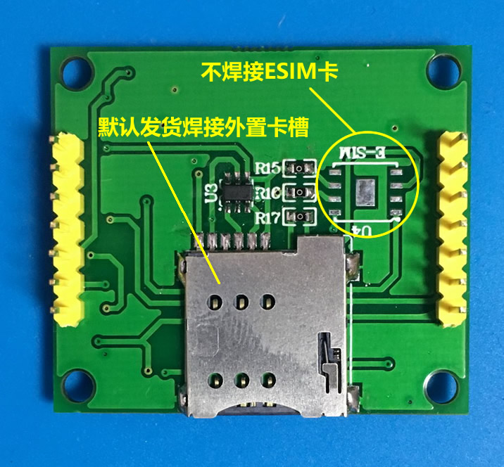 (1)SIM卡接口(MICRO-SIM),預(yù)留ESIM卡接口,客戶可以自己焊接ESIM卡;
