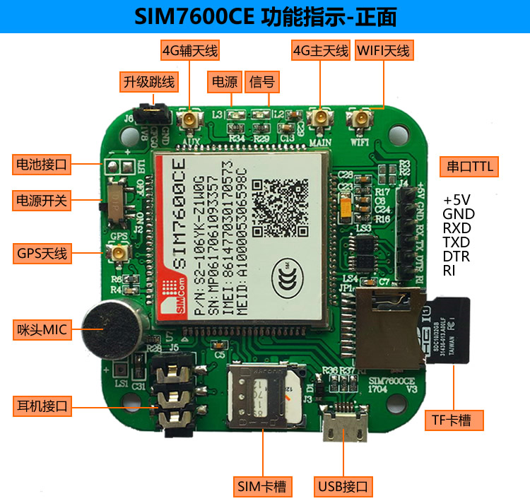 4G模塊為SIM7600CE全網通:支持移動、聯(lián)通、電信 2G/3G/4G網絡
