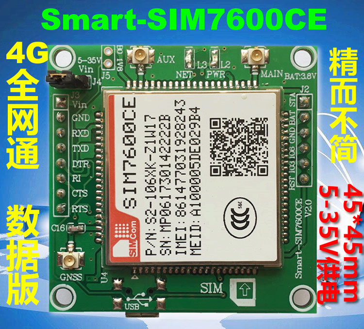 4G模塊為SIM7600CE全網(wǎng)通:支持移動(dòng)、聯(lián)通、電信 2G/3G/4G網(wǎng)絡(luò)