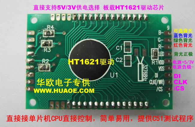 LCD段碼液晶,板載HT1621驅(qū)動(dòng)芯片,CPU直接驅(qū)動(dòng)即可! 提供C51測試代碼