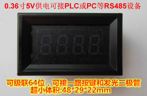 0.36寸四位數(shù)碼管模塊RS485接口,電壓單5V供電。可以級聯(lián),地址控制顯示,操作簡單,只需按規(guī)定發(fā)數(shù)據(jù)給模塊,LED就能及時顯示。支持小數(shù)點0-9數(shù)字以及ABCDEF和HLnuUPo-等字符顯示、可以8級亮度調(diào)節(jié),支持波特率修改保存。最大級聯(lián)支持64個。