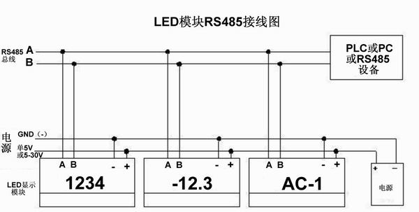 1、端子引出:VCC B A GND (VCC:5V)