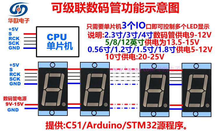 只需要單片機3IO口既可以驅動多個LED數(shù)碼管級聯(lián).