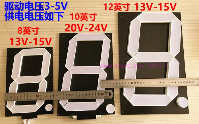 1位12英寸LED數(shù)碼管模塊,可以級聯(lián)。供電電壓13-15V