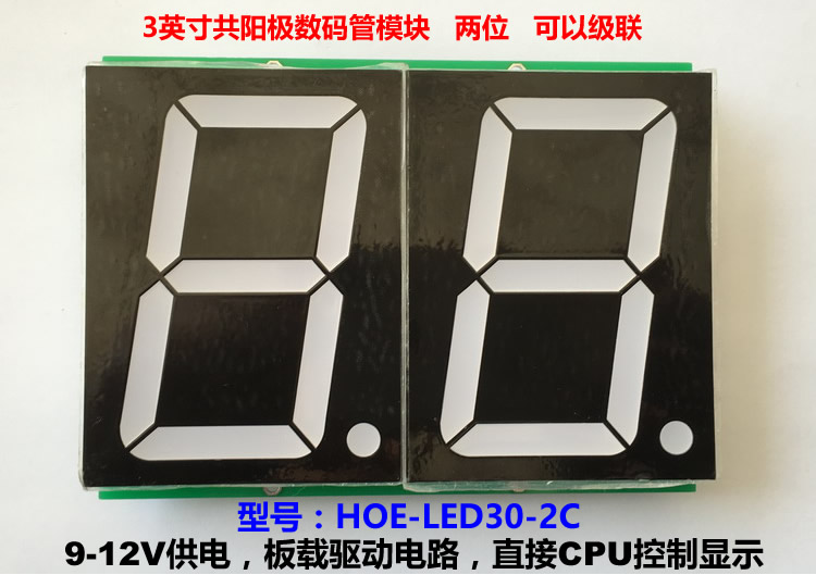1、HOE-LED30-2C 兩位3英寸共陽極數(shù)碼管模塊 一個(gè)