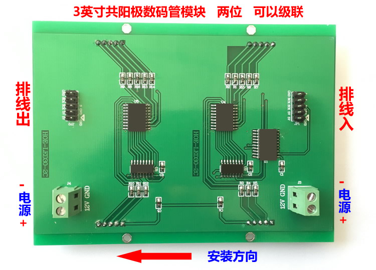 2位3寸共陽級數(shù)碼管模塊,可以級聯(lián)。供電電壓9-12V