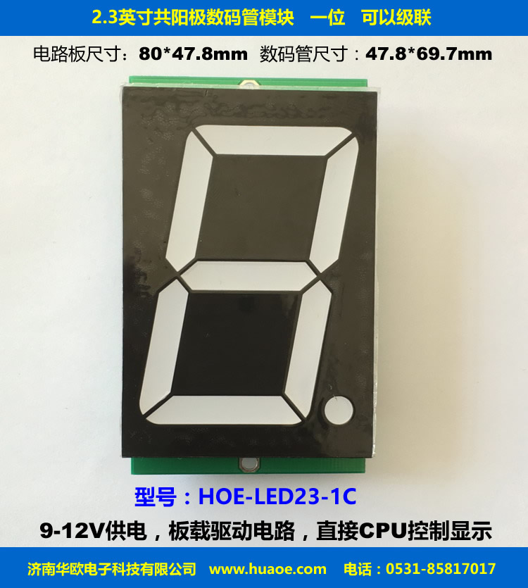 一位2.3寸共陽級數(shù)碼管模塊,可以級聯(lián)。供電電壓9-12V
