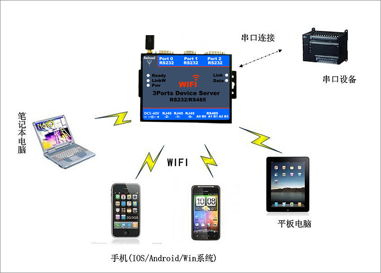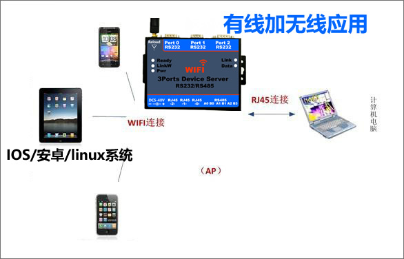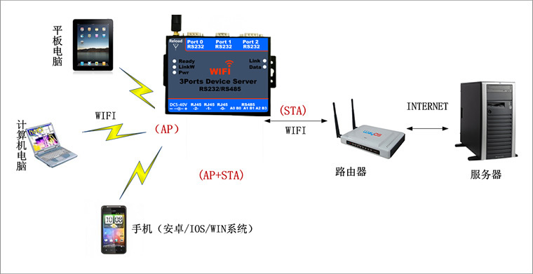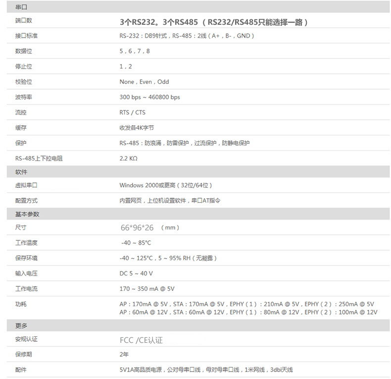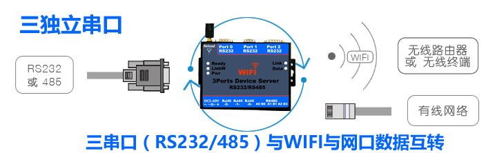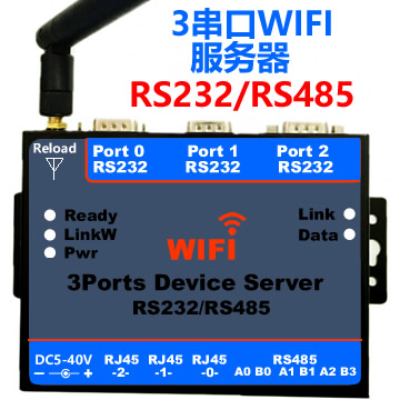 1. WIFI與3串口數(shù)據(jù)互轉(RS232/RS485僅可選擇一種,不能同時)