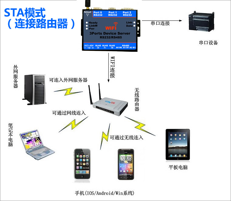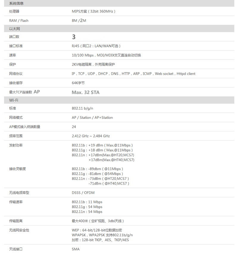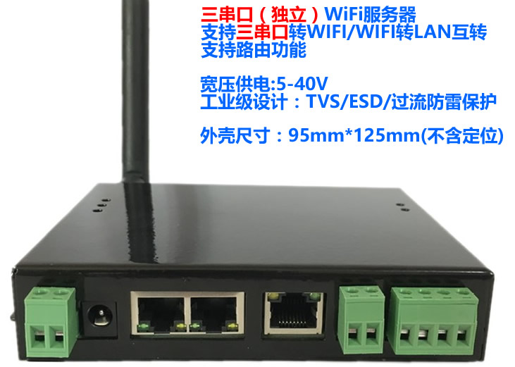 產(chǎn)品功能:可以實現(xiàn):串口與WIFI和網(wǎng)口數(shù)據(jù)透傳功能,還支持路由功能!